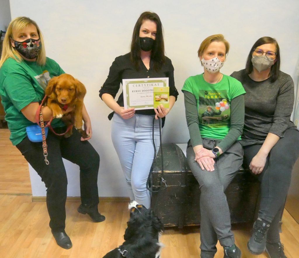 “Dziękuję za wspaniały kurs dogoterapii. Wiele się nauczyłam i poznałam tajniki komunikacji z psem. Przeżyłam świetne chwile z Wami i mam nadzieję, że jeszcze nie raz się spotkamy.”